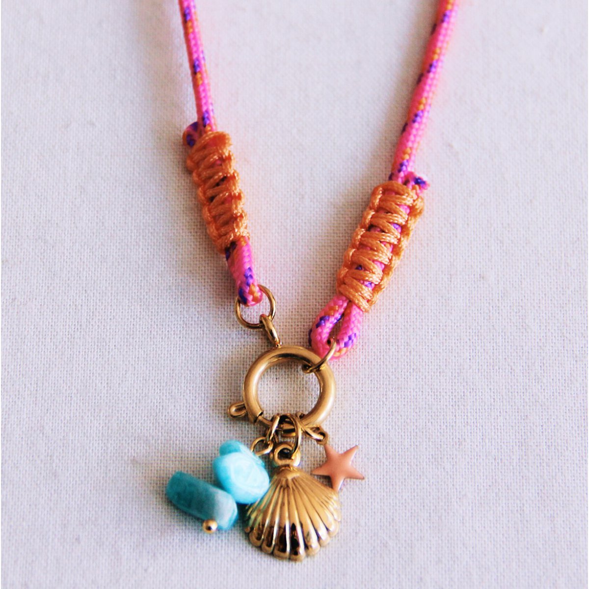 • Afbeelding in Gallery-weergave laden, Surfketting met charmes - roze/oranje