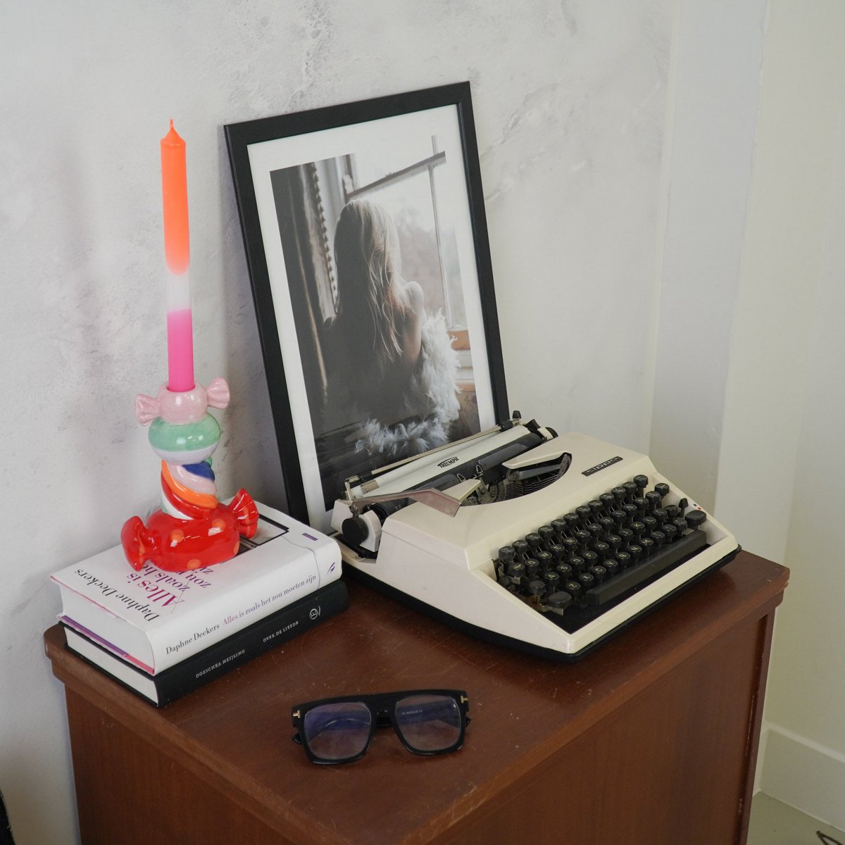 Candy -liefhebbers, let op! Breng een speelse en kleurrijke sfeer in uw huis met deze unieke kaarsenhouder in de vorm van gestapelde snoepjes! De vrolijke mix van kleuren maakt deze kandelaar tot een echte opvallende, perfect voor iedereen die van een beetje plezier in hun interieur houdt. Gemaakt van stevige dolomiet en het meten van 13 x 7 x 20 cm, is het ideaal voor uw eettafel, vensterbank of als een opvallend detail op een dressoir.
